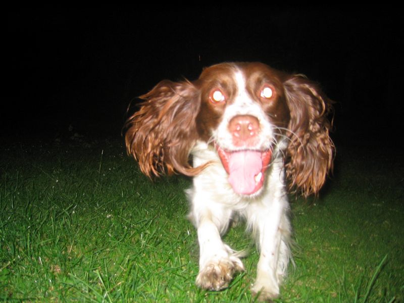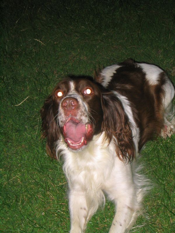 | Ian didn't take me out until late tonight, so the photos are a bit dark! Just as well I've got glowing eyes so I could see ahead of me. I look scary but I'm not really. |