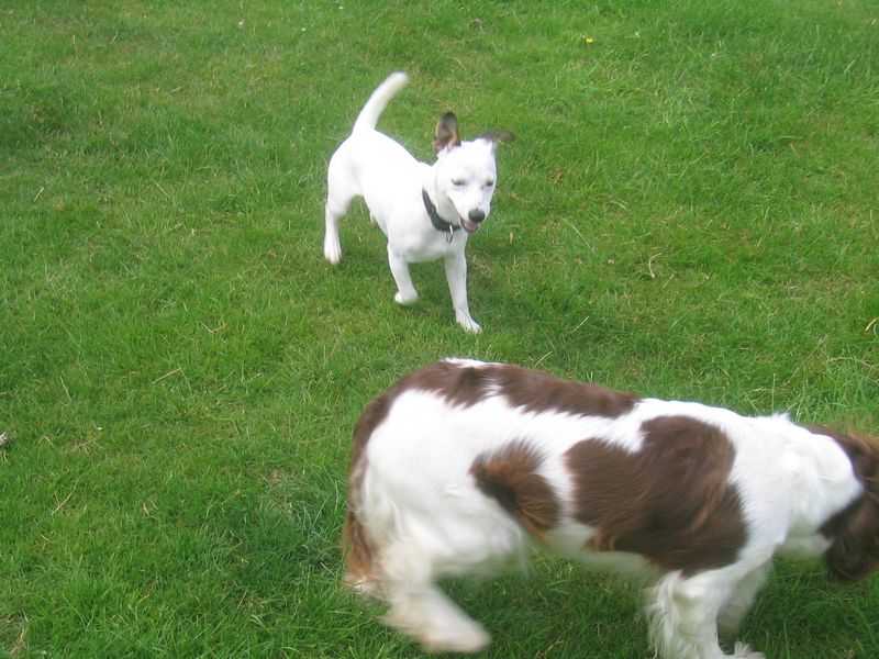 | My new friend Eddie, a 7 month old Jack Russell | Rolling around in the grass - it's hard work having fun! | |||||||||